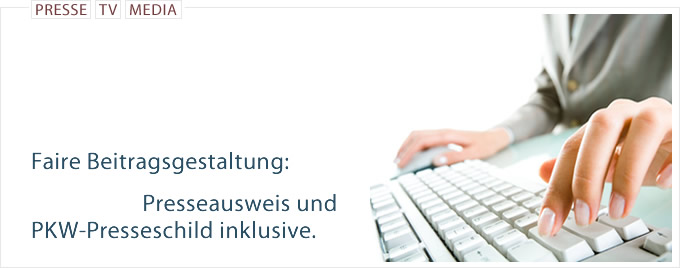 | • Presseausweis und PKW-Presseschild: 0,00 Euro - beides ist im Mitgliedsbeitrag bereits enthalten. |
